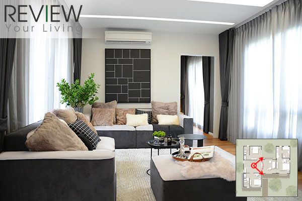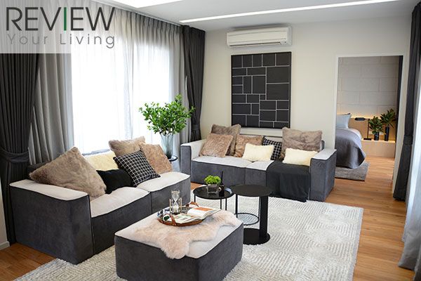 ทางโครงการจัดวางชุดโซฟาตัวยาวตลอดแนว เพื่อให้มีพื้นที่เพียงพอสำหรับทุกคนในครอบครัว