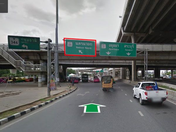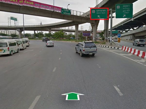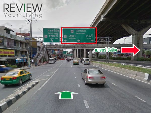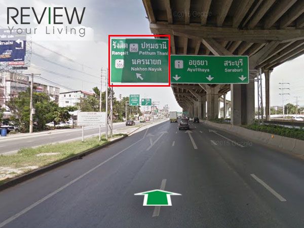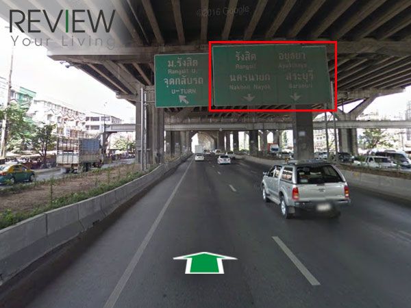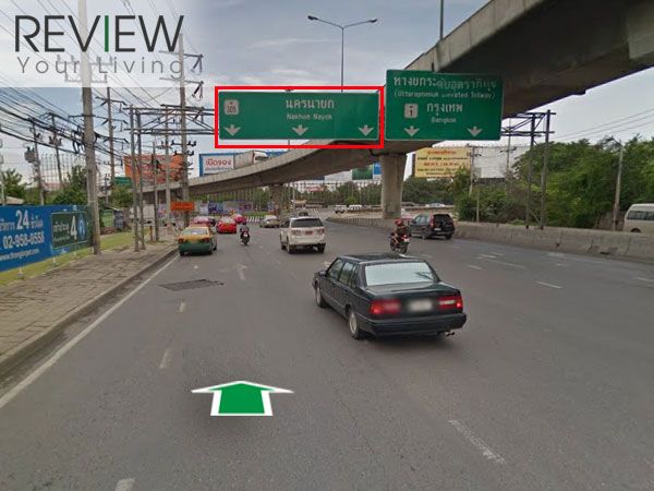 เบี่ยงซ้ายตามป้าย เพื่อขึ้นสะพานไปเข้าถนนรังสิต-นครนายก