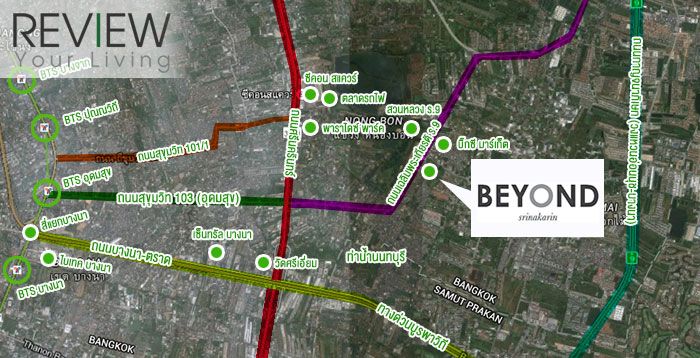 สำหรับตัวโครงการบียอนด์ ศรีนครินทร์ถือว่าอยู่ในทำเลที่ดีเลยนะครับ สภาพแวดล้อมรอบๆ เต็มไปด้วยพื้นที่สีเขียว ฝั่งตรงข้ามเยื้องๆ ไปหน่อยก็เป็นสวนหลวง ร. 9 สถานที่พักผ่อนหย่อนใจ หรือเรียกได้ว่าเป็นปอดของย่านนี้เลยก็ว่าได้ เรื่องการเดินทางก็ถือว่าสะดวกพอสมควร ที่ตั้งโครงการไม่ได้อยู่นอกเมืองจนเกินไป การเดินทางเข้าเมืองมีให้เลือกหลายเส้นทาง แถมอยู่ไม่ไกลจากรถไฟฟ้าอีกต่างหาก เรื่องทำเลถือว่าหายห่วงเลยครับ เรื่องวัสดุที่ติดมากับตัวบ้านก็ถือว่าเป็นวัสดุเกรดพรีเมี่ยมเหมาะสมกับราคาระดับนี้ ส่วนเรื่องรายละเอียดปลีกย่อยต่างๆ ของโครงการหรือของตัวบ้านเอง ถ้ารูปภาพที่เรานำมาให้ชมยังไม่จุใจหรืออาจจะยังเห็นภาพรวมๆ ของโครงการไม่ชัดเจน สามารถเดินทางไปชมโครงการด้วยตัวเองได้ทุกวันนะครับ
