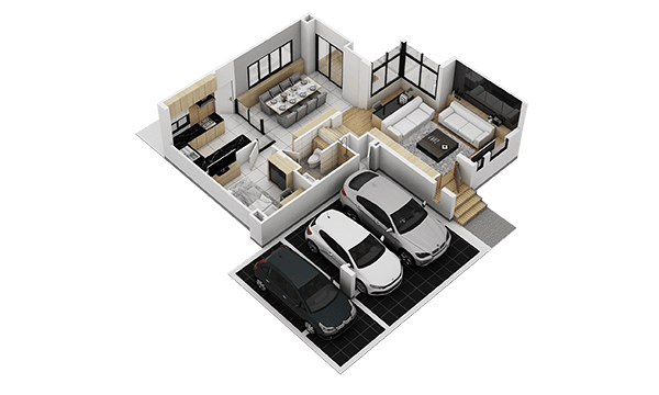 แปลนบ้านชั้น 1 หน้าบ้านจอดรถได้ 3 คัน
