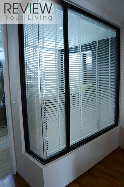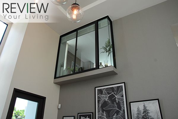 มีหน้าต่างบานเลื่อน มองลงไปเห็น Living Room ที่อยู่ด้านล่าง