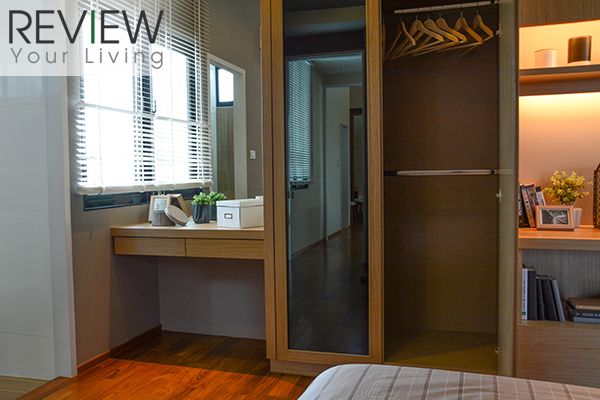 ภายในห้องจะ Built in เป็นห้องแต่งตัวแบบ Walk-in Closet มีเคาน์เตอร์กระจกเงาอยู่ตรงกลาง