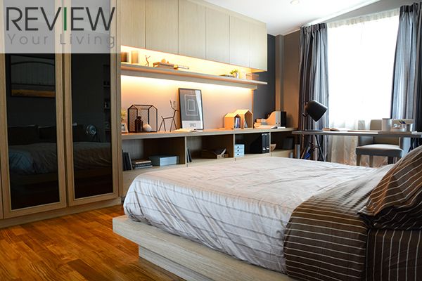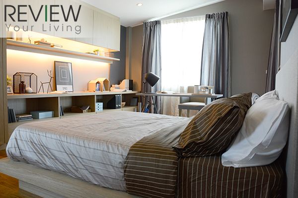 ข้างเตียงอีกด้านมีพื้นที่เหลือเยอะให้วางโต๊ะทำงาน เหมือนในบ้านตัวอย่างยังได้