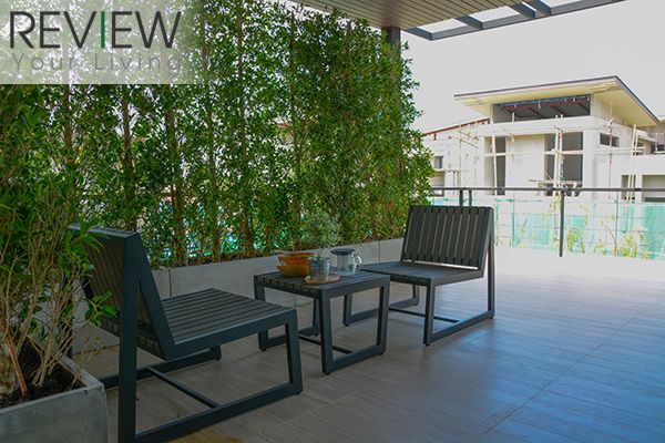 พื้นที่ระเบียงถือว่าใหญ่พอสมควรนะครับ สามารถจัดกิจกรรมเล็กๆ ภายในครอบครัวได้เลย