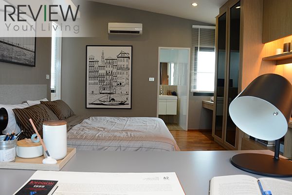 เราเข้ามาในห้องนอนกันก่อน ภายในห้องนอนก็ไม่ได้ใหญ่มากนะครับ เนื่องจากพื้นถูกแบ่งออกเป็น 2 ฝั่ง เพื่อทำเป็นห้องแต่งตัว และยังถูก Double Ceilling ของ Living Room กินพื้นที่ขึ้นมาด้วย