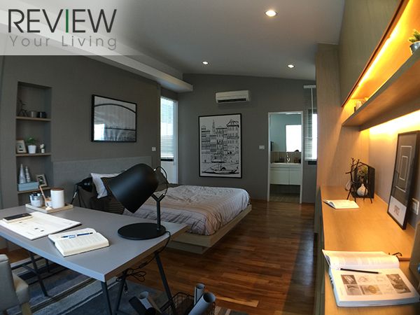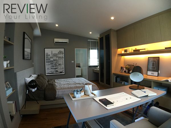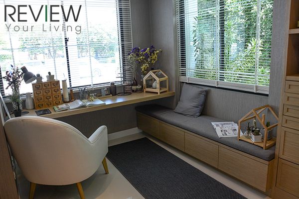 บ้านตัวอย่างจะตกแต่งเป็นห้องทำงาน วางตู้โชว์ Daybed และโต๊ะทำงานเข้าไป ก็สามารถเปลี่ยนเป็นห้องทำงานเล็กๆ ได้เลยครับ