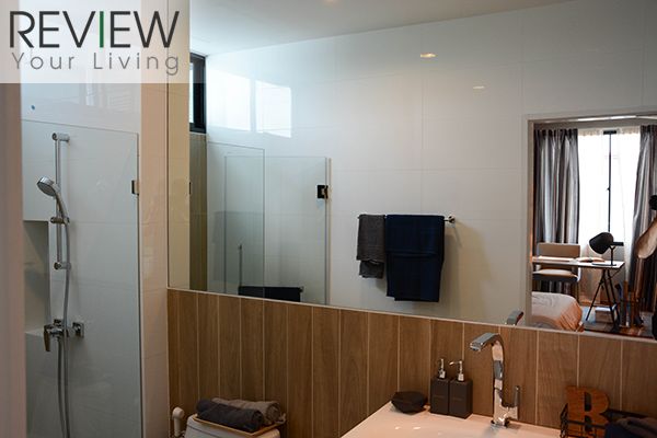 ผนังห้องน้ำจะเป็นกระจกเข้ามุม