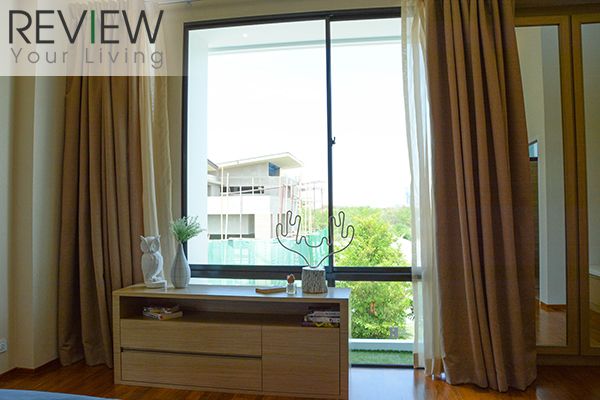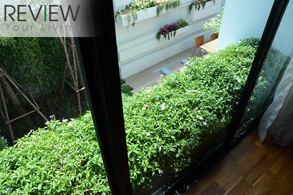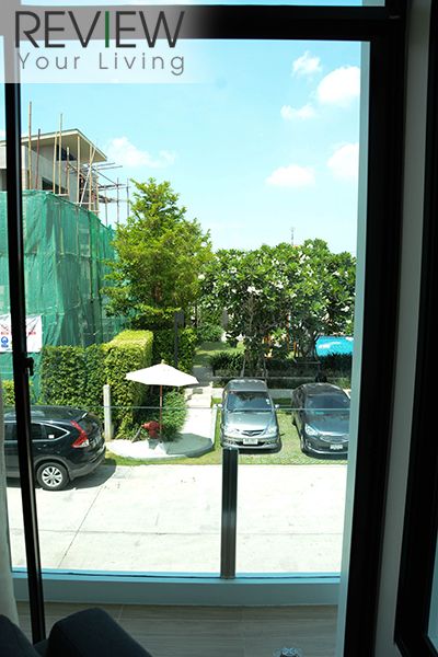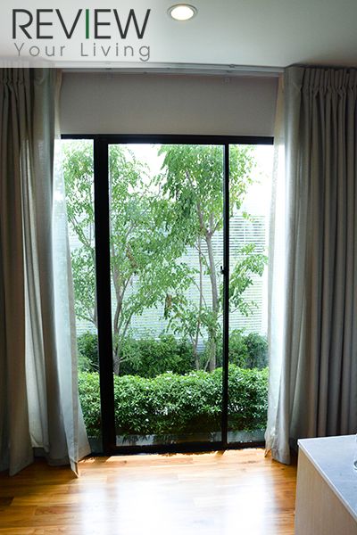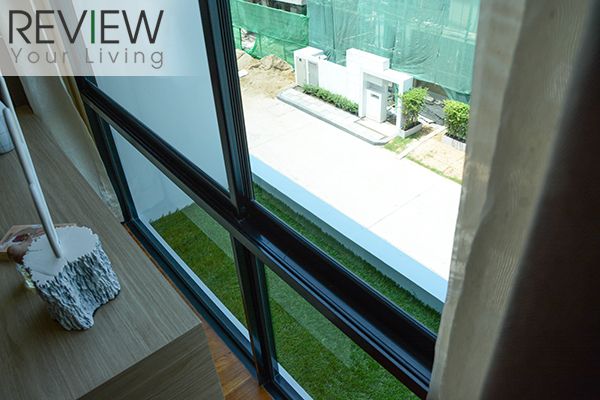 ในห้องจะมีหน้าต่างบานสูง สามารถเลื่อนเปิดได้ มองลงไปเห็นสวนหลังบ้าน
