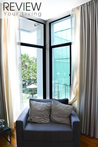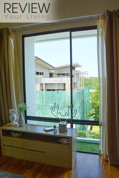 หน้าต่างกระจกบานใหญ่หันออกไปทางหน้าบ้าน เปิดรับแสงธรรมชาติได้เต็มที่