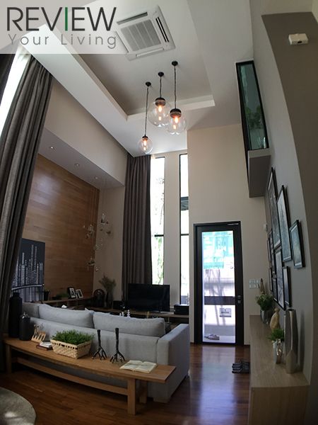 บริเวณห้องนั่งเล่นเป็น Double Ceiling ให้บรรยากาศโอ่โถง หรูหรามากเลยทีเดียว