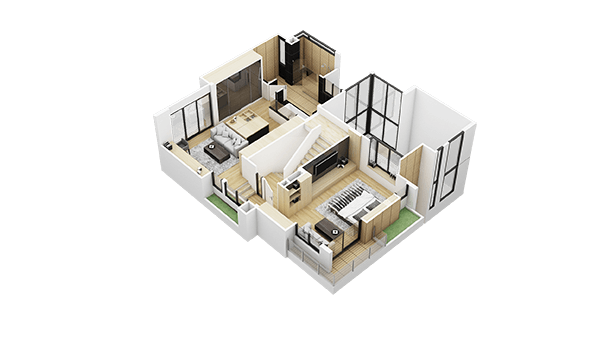 สำหรับชั้น 2 จะเป็นส่วนของห้อง Master Bedroom แบ่งออกเป็น 2 ส่วนนะครับ เมื่อขึ้นมาแล้วด้านซื้อมือจะเป็นห้องนอน ส่วนด้านขาวมือจะเป็นห้องแต่งตัวแบบ Walk-in Closet และห้องน้ำ
