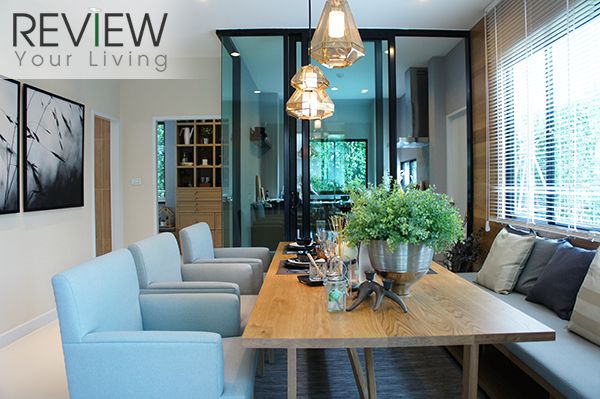 เข้ามาในบ้านแล้วมองตรงไปจะเป็นห้องทานอาหาร ด้านขาวมือจะเป็น Living Room