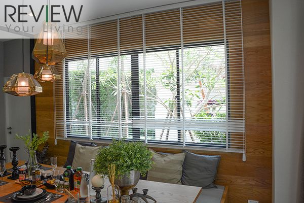 อีกด้านของโต๊ะทานอาหารจะมีประตูกระจกบานเลื่อน ออกไปยังสวนด้านนอก
