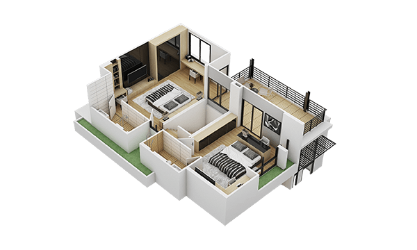 แปลนชั้นที่ 3 จะแบ่งเป็นห้องนอน 2 และพื้นที่ระเบียง