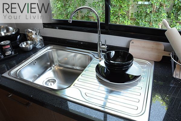 ซิ้งค์ล้างจานแบบฝัง มีที่พักจานข้างๆ