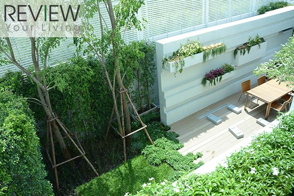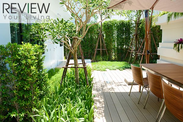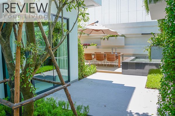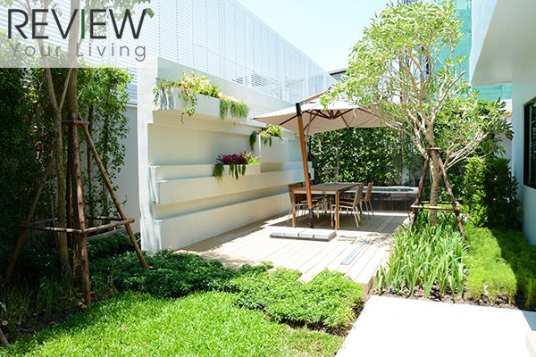 พื้นที่รอบบ้านจะตกแต่งเป็นสวน ปูหญ้าให้ด้วย ภายใต้คอนเซปต์ Ever Green Living