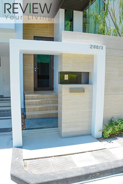 หน้าบ้านมีซุ้มประตูเล็กดูหรูหราด้วยกระเบื้องหินอ่อนครับ