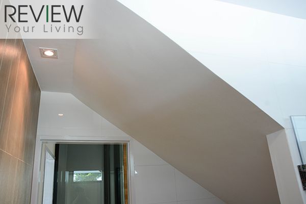 ห้องน้ำชั้นล่างอยู่ตรงตำแหน่งใต้บันได เวลาลุกจากนั่งชักโครกต้องระวังกันหน่อยสำหรับคนตัวสูงๆ
