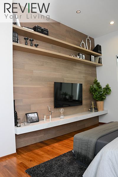 ปลายเตียงมีพื้นที่เลหือเยอะให้ Built in ชั้นวางทีวี และชั้นวางของได้