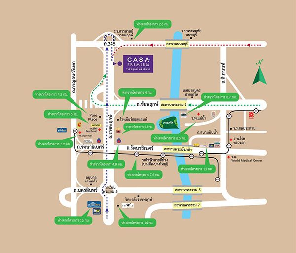 • ที่ตั้งโครงการ   ถนนราชพฤกษ์ ตำบลคลองข่อย อำเภอปากเกร็ด นนทบุรี