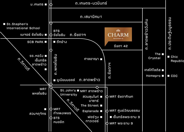 - ที่ตั้งโครงการ ซอยรัชดาภิเษก 42 ถนนรัชดาภิเษก แขวงจันทรเกษม เขตจตุจักร กรุงเทพฯ