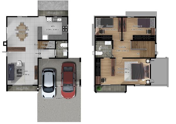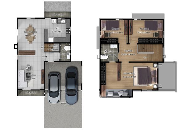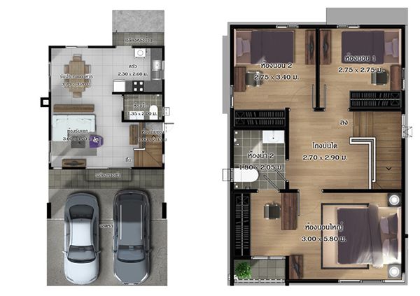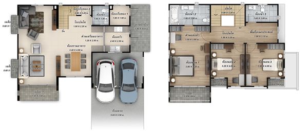 พื้นที่ใช้สอย 190 ตารางเมตร ขนาดที่ดิน 68.60 ตารางวา 3 ห้องนอน 3 ห้องน้ำ 2 จอดรถ