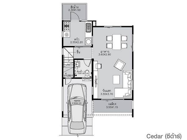 - Cedar พื้นที่ใช้สอย 106 ตร.ม ขนาดที่ดิน 50 ตร.ว 3 ห้องนอน 2 ห้องน้ำ 1 ที่จอดรถ