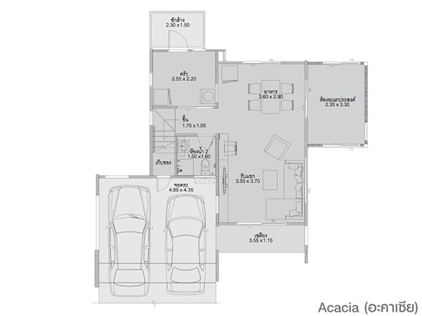 - Acacia พื้นที่ใช้สอย 125 ตร.ม ขนาดที่ดิน 60 ตร.ว 3 ห้องนอน 2 ห้องน้ำ 2 ที่จอดรถ