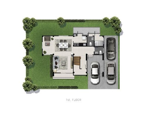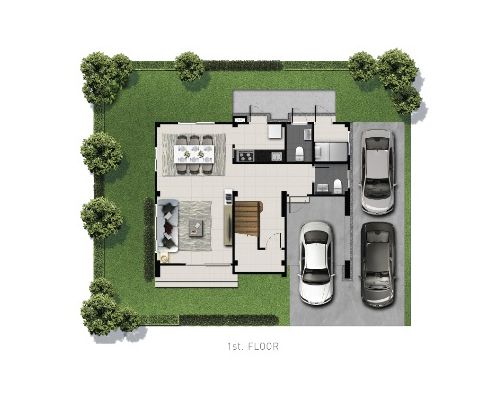 พื้นที่ใช้สอย 190 ตารางเมตร 4 ห้องนอน 3 ห้องน้ำ 2 ที่จอดรถ