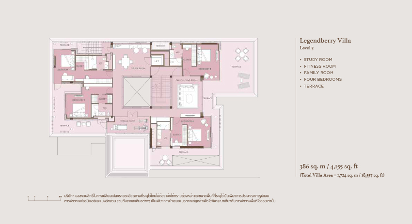 | ขนาดห้อง | - Roseberry (S) พื้นที่ใช้สอย 1023 ตร.ม. ขนาด 4 ห้องนอน 7 ห้องน้ำ ที่จอดรถใต้ดิน 4 คัน 2 ห้องแม่บ้าน 1 ห้องคนขับรถ - Visionberry (M) พื้นที่ใช้สอย 1246 ตร.ม. ขนาด 5 ห้องนอน 9 ห้องน้ำ ที่จอดรถใต้ดิน 5 คัน 2ห้องแม่บ้าน 1 ห้องคนขับรถ และลิฟต์โดยสาร - Legendberry (L) พื้นที่ใช้สอย 1724 ตร.ม. ขนาด 6 ห้องน้ำ 11 ห้องน้ำ ที่จอดรถ 6 คัน 2 ห้องแม่บ้าน 1 ห้องคนขับรถ และลิฟต์โดยสาร |