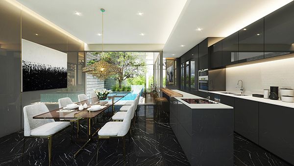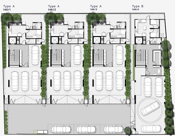 Type A ขนาดที่ดิน 51 – 52 ตารางวา พื้นที่ใช้สอย 610 ตารางเมตร 4 ห้องนอน 5 ห้องน้ำ 4-5 ที่จอดรถ ราคาเริ่มต้น 49.9 ล้านบาท (Option สระว่ายน้ำ ราคา 50.8 ล้านบาท)