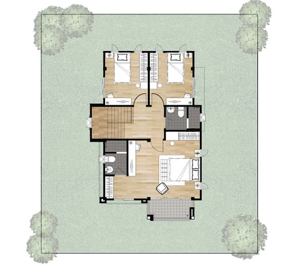 - Type D พื้นที่ใช้สอย 180 ตารางเมตร ขนาดที่ดิน 65-113 ตารางวา 3 ห้องนอน 3 ห้องน้ำ ที่จอดรถ 2 คัน