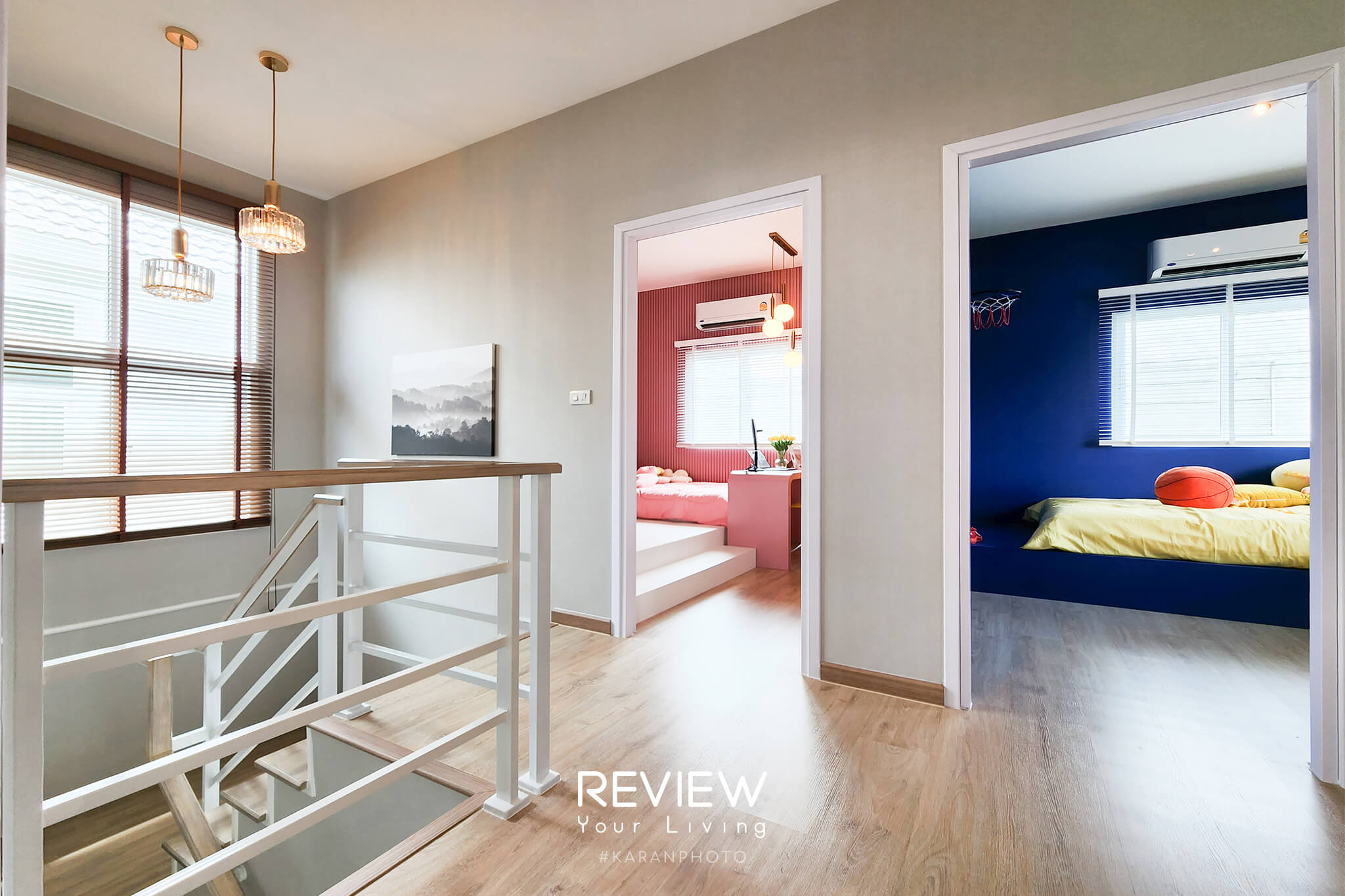 เมื่อขึ้นไปที่บริเวณชั้น 2 จะแบ่งออกเป็น 3 ห้องนอน โดยที่พื้นที่ของ Master Bedroom จะอยู่โซนด้านหน้าของบ้าน เป็นห้องใหญ่เต็มหน้ากว้างของตัวบ้าน ทำให้ภายในห้องกว้างขวางมากพอที่จัดสรรเป็น walk-in closet บริเวณหน้าห้องน้ำภายในห้อง ในขณะเดียวกันก็พื้นที่ภายในห้องยังคงกว้างขวางเหมาะกับการพักผ่อนได้อย่างเต็มที่ และโปร่งสบายตาด้วยความสูงของฝ้าเพดานถึง 2.9 เมตร ในขณะที่อีก 2 ห้องนอนในบ้านตัวอย่างตกแต่งเป็นห้องนอนสำหรับเด็กๆ ทั้งในสไตล์หวานๆ สำหรับเด็กผู้หญิง และสไตล์เท่ๆ แบบเด็กผู้ชาย ซึ่งแน่นอนว่าพื้นที่ของห้องนอนทั้ง 2 ห้องนี้ เจ้าของบ้านสามารถปรับเปลี่ยนฟังก์ชั่นการใช้งานได้ตามต้องการ เช่น การตกแต่งเป็นห้องแต่งตัว สตูดิโอสำหรับ Live ขายของออนไลน์ หรือห้องหนังสือก็ทำได้ เพราะทั้ง 2 ห้องมีหน้าต่างบ้านใหญ่เปิดรับแสงได้เป็นอย่างดี