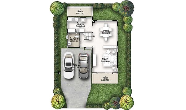 พื้นที่ใช้สอย 175 ตารางเมตร 4 ห้องนอน 3 ห้องน้ำ 2 ที่จอดรถ