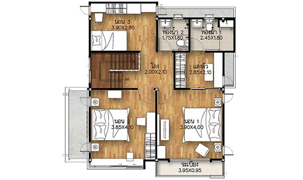 พื้นที่ใช้สอย 113 ตารางเมตร 3 ห้องนอน 2 ห้องน้ำ 2 ที่จอดรถ