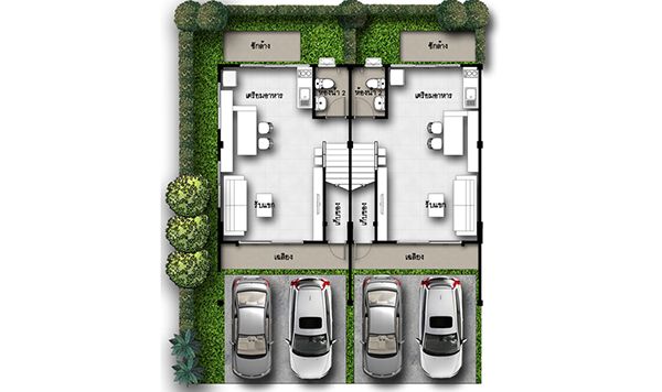 พื้นที่ใช้สอย 122 ตารางเมตร 3 ห้องนอน 2 ห้องน้ำ 2 ที่จอดรถ