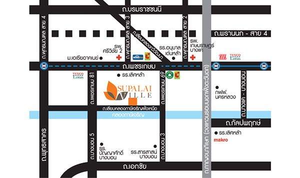 Supalai Ville เพชรเกษม 69 โครงการบ้านเดี่ยว บ้านแฝด และทาวน์โฮม 2 ชั้น บนนนเลียบคลองภาษีเจริญฝั่งเหนือ สะดวกสบายในการพักผ่อนด้วยสวนสาธารณะขนาดเกือบ 2 ไร่ พร้อมทั้งสโมสรและว่ายน้ำที่อยู่ภายในโครงการ จากศุภาลัย