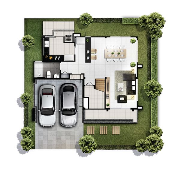 พื้นที่ใช้สอย 220 ตารางเมตร ขนาด 3 ห้องนอน 4 ห้องน้ำ ที่จอดรถ 2 คัน