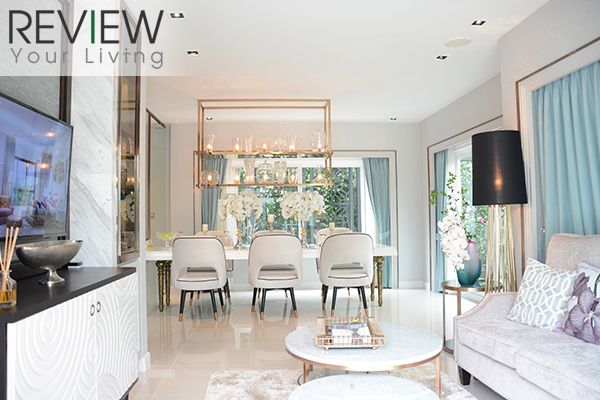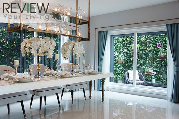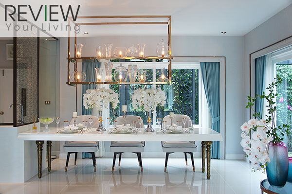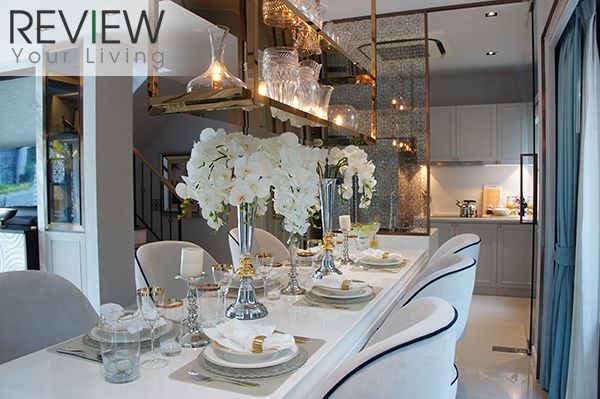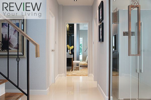 ภายในตัวบ้านตกแต่งไว้อย่างเรียบหรู สะท้อนให้เห็นถึงการออกแบบในสไตล์ Modern ในขณะที่ก็ยังสอดแทรกรายละเอียดของดีไซน์ต่างๆ ไว้ทั่วบ้าน ชั้นล่างมี Living Area กว้างขวาง ซึ่งมีพื้นที่นั่งเล่นเชื่อมต่อกับ Dining Area หน้าครัวได้อย่างกลมกลืน ตัวบ้านมีหน้าต่างและประตูกระจกบานใหญ่ช่วยเปิดรับแสงธรรมชาติและวิวสวนสวยจากภายนอกได้อย่างเต็มที่
