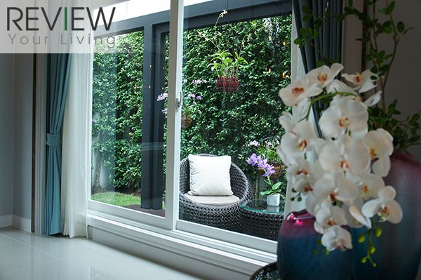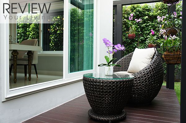 ติดกับส่วน Dining Area จะมีระเบียงออกไปที่สวนข้างบ้าน เป็นประตูบานเลื่อน 2 ตอน บานใหญ่