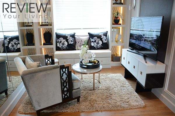 ด้านที่วางโซฟาโครงการวางโซฟา 2 ที่นั่งมาให้ดูเป็นตัวอย่าง แต่ดูจากพื้นที่แล้วสามารถวางโซฟา 3-4 ที่นั่ง ได้สบายๆ