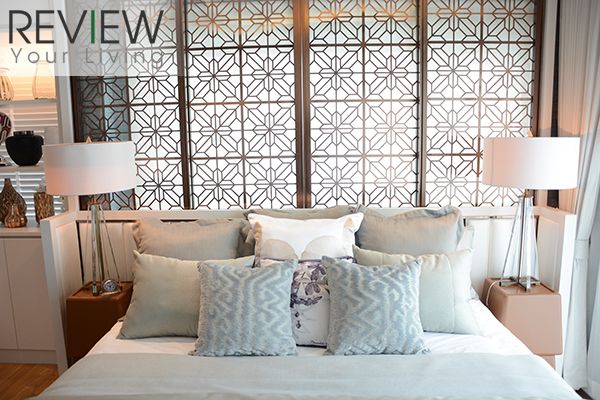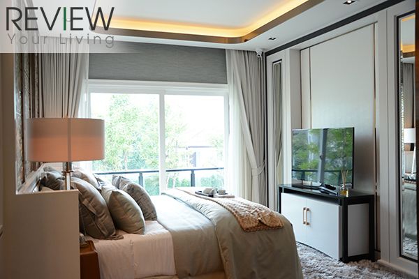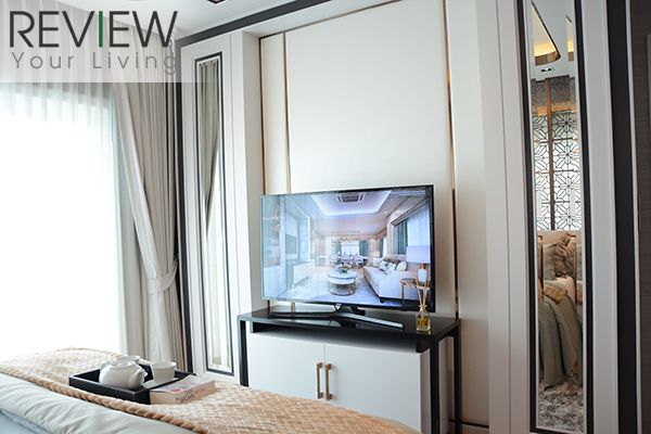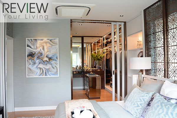 Master Bedroom มีพื้นที่ใช้สอยกว้างขวาง ติดกับระเบียงใหญ่ที่เปิดออกไปรับวิวได้เต็มตา ส่วนพื้นที่ภายในก็จัดการตกแต่งไว้อย่างเป็นสัดส่วนพร้อมลงรายละเอียดในดีไซน์เพิ่มความหรูหราสะดุดตา ทั้งบริเวณหัวเตียงสวยหรู และ Walk-in Closet บริเวณหน้าห้องน้ำที่ตกแต่งมาได้อย่างลงตัว
