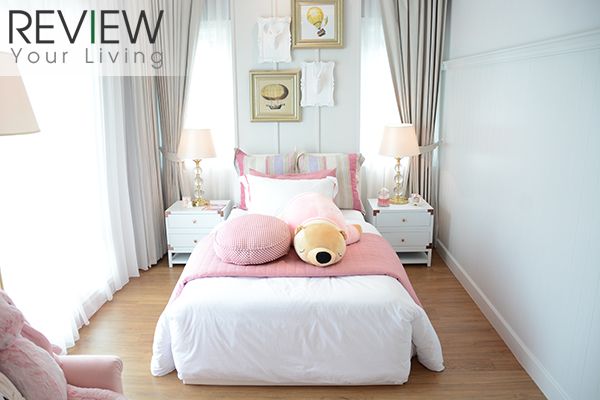 ห้องแรกอยู่ด้านซ้ายมือโครงการตกแต่งด้านโทนสีชมพูหวานแหวว
