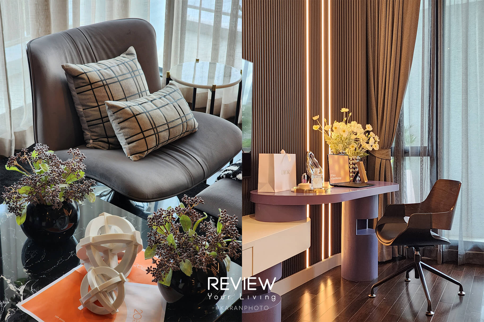 ความอลังการของโถงรับแขกของบ้านหลังนี้ เชื่อว่าใครเห็นก็ต้องร้องว้าว ทั้งความกว้างของพื้นที่ใช้สอย เพดานสูงแบบ Double Volume และประตูกระจกบานเลื่อนขนาดใหญ่ที่เชื่อมต่อกับสระว่ายน้ำส่วนตัวภายในบ้าน แถมทางโครงการยังปรับเปลี่ยนฟังก์ชั่นของบ้านหลังนี้หลายส่วน จนแทบจะเปลี่ยนพื้นที่ใช้สอยเดิมไปอย่างสิ้นเชิง บรรยากาศภายในบ้านหลังนี้จึงดูพิเศษไปซะทุกส่วน