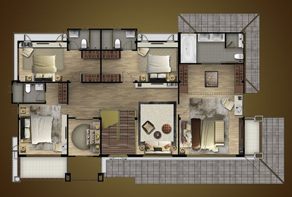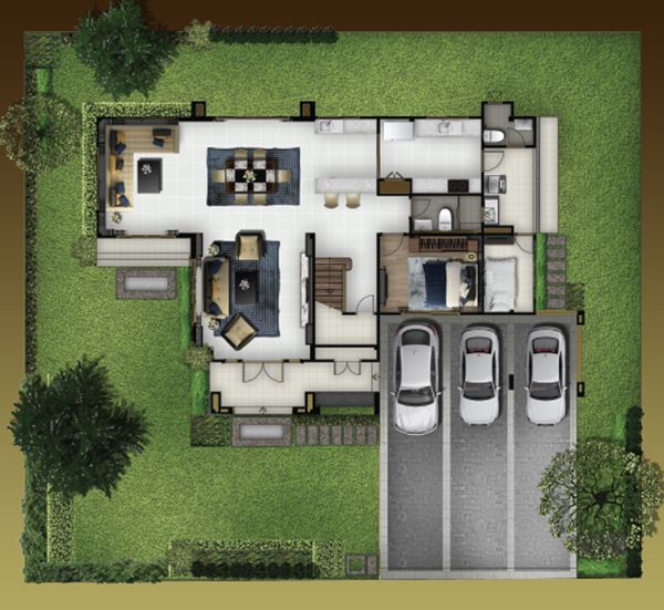 พื้นที่ใช้สอย 414 ตร.ม. ขนาด 5 ห้องนอน 6 ห้องน้ำ 1 ห้องอเนกประสงค์ 1 ห้องนั่งเล่น 1 ห้องพระ 1 ห้องคนรับใช้ ที่จอดรถ 3 คัน