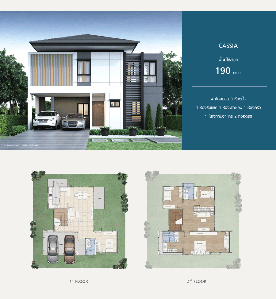 - Cassia พื้นที่ใช้สอย 190 ตร.ม. 4 ห้องนอน 3 ห้องน้ำ 2 ที่จอดรถ
