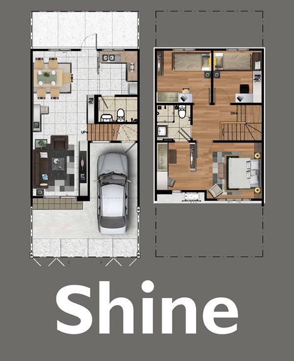 • Shine หน้ากว้าง 5.7 เมตร พื้นที่ใช้สอยประมาณ 110 ตารางเมตร ขนาดที่ดิน 19.8 ตารางวา 3 ห้องนอน 2 ห้องน้ำ 1 ที่จอดรถ