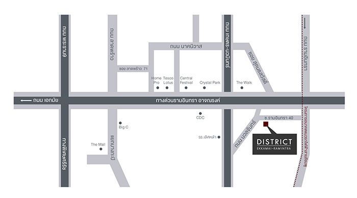 - ที่ตั้งโครงการ ซอยรามอินทรา 40 แขวงนวลจันทร์ เขตบึงกุ่ม กรุงเทพฯ