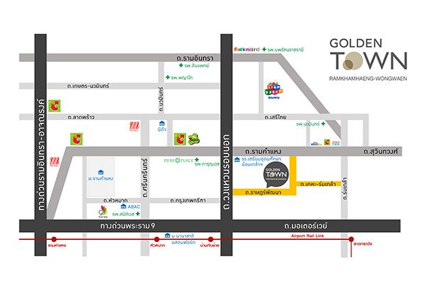 Golden Town รามคำแหง-วงแหวน ทาวน์โฮม 2 ชั้น พร้อมเข้าอยู่ บนถนนราษฎร์พัฒนา เดินทางสะดวกใกล้รถไฟฟ้าและทางด่วน จาก Golden Land