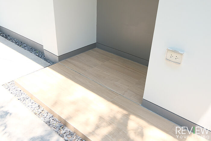 สำหรับพื้นส่วนนี้จะถูกลดระดับลงมาจากพื้นบ้านชั้น 1 เพื่อช่วยกันฝุ่นเข้าสู่ตัวบ้านนะคะ